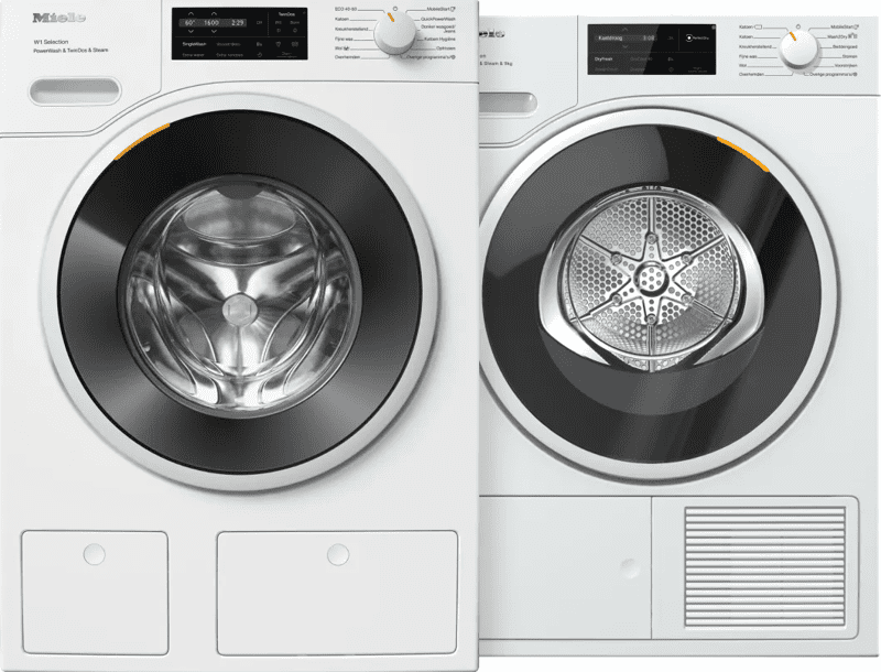 <p>Je doet grote ladingen was en vermindert strijkwerk met de Miele WSJ 883 WCS + Miele TSL 783 WP wasmachine en droger set.</p>rnrn<p><h5>Wasmachine</h5>rnMet 9 kilogram vulgewicht heb je ruimte voor grote ladingen beddengoed of kleding. TwinDos doseert het UltraPhase wasmiddel automatisch in 2 fasen. Hierdoor was je extra grondig schoon. Met QuickPowerWash was je een halve trommel in maar 49 minuten. Heb je geen zin in strijkwerk? SteamCare verwijdert tot 50% van de kreukels uit je was. Dat scheelt jou weer tijd.</p><br>rnrn<p><h5>Droger</h5>rnNa het wassen past alles in de droogtrommel. Dankzij EcoSpeed droog je je kleding niet alleen energiezuinig, maar ook relatief snel. Met het Wash2Dry programma kiest de droger zelf het beste droogprogramma op basis van je wasprogramma. Zo kies je altijd de beste behandeling voor je favoriete kleding. Je frist muffe was op zonder wasbeurt en vermindert kreukels met het 'stomen' programma.</p>rn
