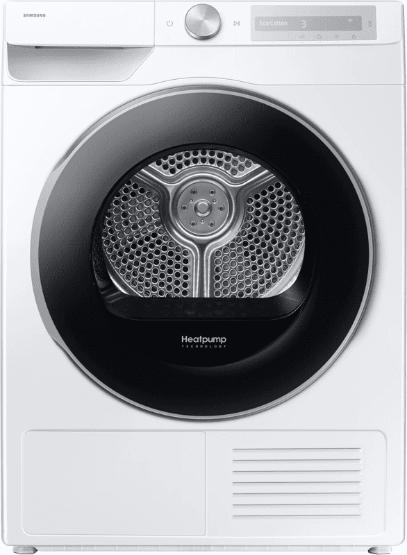 Met de Samsung DV90DG6845LHU3 AI Dry+ droog je een halve trommel wasgoed in 81 minuten. Dit is handig als je vaak haast hebt. Gebruik je ook een Samsung Super Speed wasmachine? Dan is je was in 2 uur schoon en droog. Het Hygiene Care programma droogt je wasgoed extra hygiënisch. Je verwijdert bacteriën en allergenen grondig uit je kleding, waardoor je minder last hebt van allergieën. De droger heeft energieklasse A. Je droogt hierdoor energiezuinig en bespaart tot € 340,- aan energiekosten over de levensduur van het apparaat. Met Gratis Drogen van Coolblue Energie bespaar je nog meer energiekosten. Je droogt je was namelijk iedere dag gratis tussen 12.00 en 15.00.