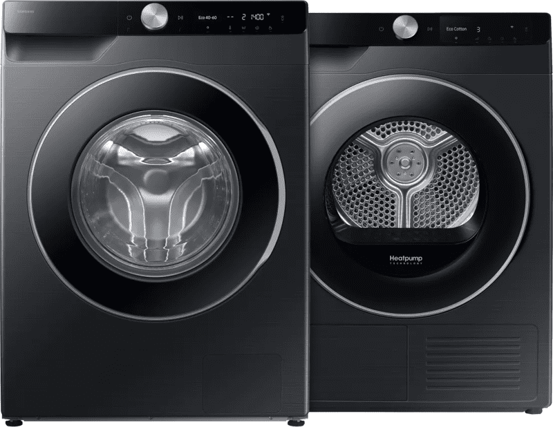 <p>De Samsung WW11DG6B85LB + Samsung DV90DG6845LBU3 houdt een grote lading wasgoed langer mooi dankzij AI Wash en AI Dry+.</p>rn<p><strong>Wasmachine</strong><br>rnJe doseert je wasmiddel en wasverzachter automatisch met AI Wash. Zo gebruik je nooit te veel, wat beter is voor je kleding. Je wast met 11 kilogram vulgewicht een extra grote lading in één keer. Beddengoed was je hygiënisch schoon dankzij Steam Wash. Dit stoomprogramma verwijdert bacteriën en allergenen met stoom. Hiermee stap je 's avonds onder extra frisse lakens.</p>rn<p><strong>Droger</strong><br>rnMet AI Dry+ pas je het droogprogramma aan op de stof van je wasgoed. Dit is beter voor je wollen trui of bodywarmer. Je droogt met 9 kilogram vulgewicht een groot deel van je natte was in één keer. Koppel je droger met SmartThings aan je telefoon. Zo download je extra programma's en doe je de was ook op afstand.</p>rn