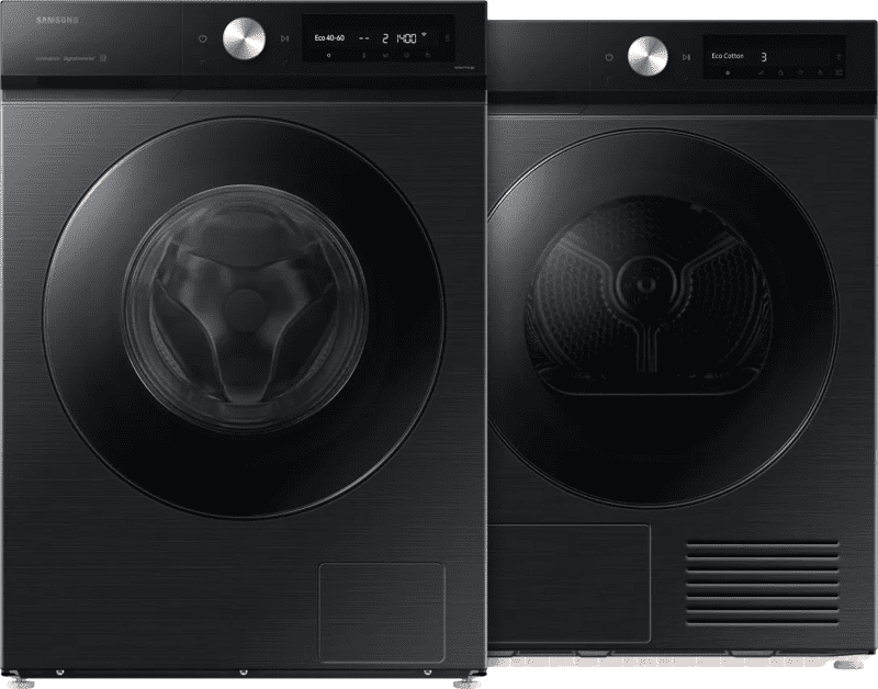 <p>Met de Samsung WW90DB7U94GBU3 AI Wash + Samsung DV90DB7845GBU3 QuickDrive was en droog je zeer zuinig een grote lading.</p>rn<p><strong>Wasmachine</strong><br>rnJe doseert je wasmiddel en wasverzachter automatisch dankzij AI Wash. De troebelheidssensor ziet hoe vuil je was is en past hier de dosering op aan. Met 9 kilogram vulgewicht was je een grote lading beddengoed in één keer. Je lakens was je extra hygiënisch schoon met Steam Wash. De stoomfunctie verwijdert allergenen, zoals dierenharen en pollen.</p>rn<p><strong>Droger</strong><br>rnNa het wassen droog je al je beddengoed in één keer. Je doet dit zuinig dankzij energieklasse A. Wanneer je een halfvolle trommel hebt, droog je deze lading in 81 minuten met Super Speed. Met de QuickDrive functie kort je programma's in. Ook koppel je met de SmartThings app extra programma's en bedien je je droger op afstand.</p>rn