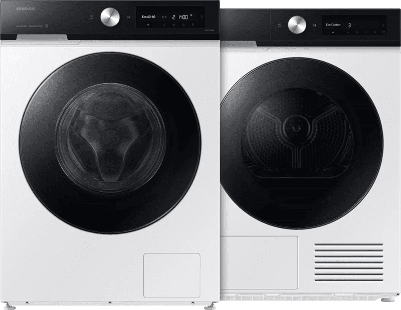 <p>De Samsung WW90DB7U94GE AI Wash + Samsung DV90DB7845GEU3 QuickDrive wast en droogt een grote lading zuinig en snel.</p>rn<p><strong>Wasmachine</strong><br>rnJe hebt 9 kilogram vulgewicht genoeg ruimte voor een grote lading beddengoed. Met QuickDrive kort je de wastijd bij 11 programma's in. Ook was je met Super Speed een halfvolle trommel in 39 minuten. Je wasmiddel en wasverzachter doseer je automatisch met AI Wash, wat beter is voor je kleding. Koppel je wasmachine met de SmartThings app aan je telefoon.</p>rn<p><strong>Droger</strong><br>rnAl je natte was droog je in één keer dankzij het ruime vulgewicht van 9 kilogram. De warmtepompdroger bespaart tijd en energie. Een halfvolle trommel is in 81 minuten droog met het Super Speed programma. Ook kort je met QuickDrive verschillende programma's in. Zo is je favoriete outfit sneller droog voor de sportschool.</p>rn