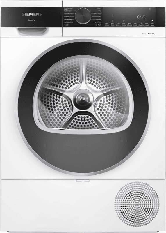 Je droogt 8 kilogram wasgoed met de Siemens WQ33G2DLNL wasdroger. Hiermee heb je ruimte voor het beddengoed van één tweepersoonsbed of een paar outfits. Op het display vind je 14 verschillende droogprogramma's voor je was. Kies bijvoorbeeld voor een programma voor je hoofdkussen, handdoeken of outdoorkleding. Heb je last van allergieën? Kies dan voor het hygiëneprogramma. De hogere droogtemperatuur doodt namelijk bacteriën en allergenen. Je droogt je favoriete shirts binnen 40 minuten met het Extra snel 40' programma. Zo trek je je favoriete outfit snel aan naar je afspraak. Wil je al je was droog uit de trommel halen wanneer je thuiskomt van je werk? Stel dan gemakkelijk de eindtijd in met einduitstel.